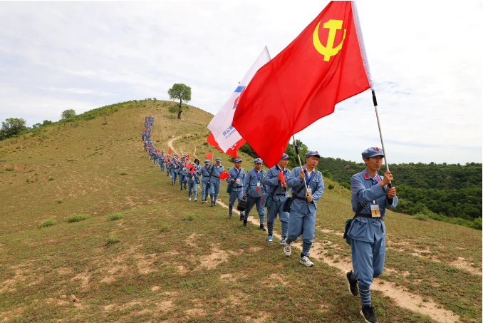 隨后,全體人員從甘泉縣圪嶗村出發(fā),沿著當(dāng)年紅軍走過的足跡,重走長(zhǎng)征路,徒步6.8公里,到達(dá)九牛塔段。途中,全體人員學(xué)唱了《三大紀(jì)律八項(xiàng)注意》紅色歌曲,吟誦了《七律·長(zhǎng)征》和《沁園春·雪》,聆聽了紅軍長(zhǎng)征光輝事跡,體驗(yàn)紅軍長(zhǎng)征的艱辛,感受紅軍不畏艱險(xiǎn),英勇頑強(qiáng)的革命精神。