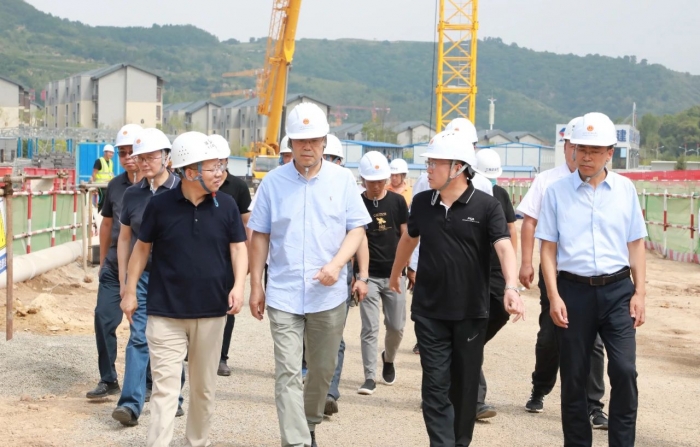 安強(qiáng)副主席深入施工現(xiàn)場(chǎng),實(shí)地察看了項(xiàng)目施工進(jìn)展情況,聽取了陜建十三建集團(tuán)黨委書記、董事長(zhǎng)卜國(guó)平關(guān)于項(xiàng)目建設(shè)、疫情防控、防暑降溫等有關(guān)方面的匯報(bào)。