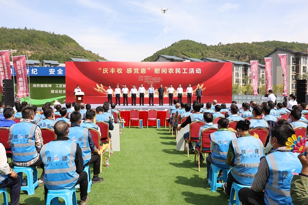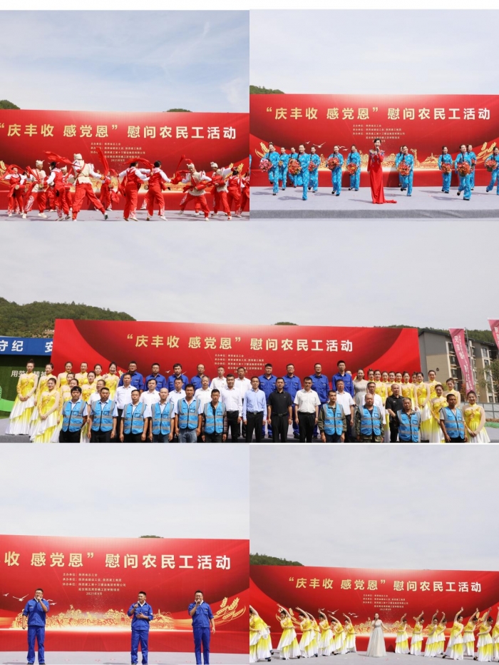 在第四個(gè)“中國(guó)農(nóng)民豐收節(jié)”到來(lái)之際,9月22日,陜西省總工會(huì)走進(jìn)陜建十三建集團(tuán)延安南泥灣勞模工匠學(xué)院項(xiàng)目,開展“慶豐收、感黨恩”慰問(wèn)農(nóng)民工活動(dòng)。