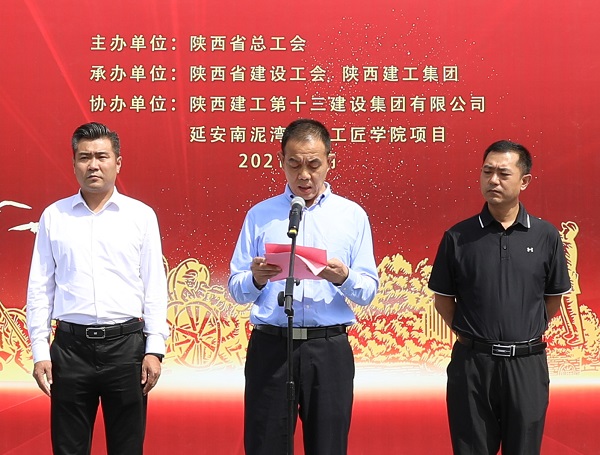 陜西建工集團(tuán)黨委常委、副總經(jīng)理劉小強(qiáng)在致辭中表示陜建作為我省最大的國(guó)企建筑鐵軍,在省委、省政府的領(lǐng)導(dǎo)下,在70余年的發(fā)展長(zhǎng)河中,建設(shè)了一大批國(guó)防、科教、文衛(wèi)、公共服務(wù)等重點(diǎn)項(xiàng)目,積極服務(wù)于陜西發(fā)展和國(guó)家建設(shè),既有深厚的文化積淀,又有雄厚的綜合實(shí)力。有幸承建延安南泥灣勞模工匠學(xué)院這個(gè)重點(diǎn)項(xiàng)目,我們倍感榮幸,倍加珍惜。我們已將該項(xiàng)目列為十三建集團(tuán)的“一號(hào)工程”,調(diào)集精兵強(qiáng)將,以“出手必須出彩,完成必須完美”的作風(fēng)、“開局就是決戰(zhàn),起步就是沖刺”的魄力,“努力到無(wú)能為力,拼搏到感動(dòng)自己”韌勁,科學(xué)合理、協(xié)調(diào)高效的管理模式,將項(xiàng)目建設(shè)成為優(yōu)質(zhì)結(jié)構(gòu)工程、綠色施工示范工程,爭(zhēng)創(chuàng)魯班獎(jiǎng),為省總工會(huì)交上一份滿意的“答卷”。