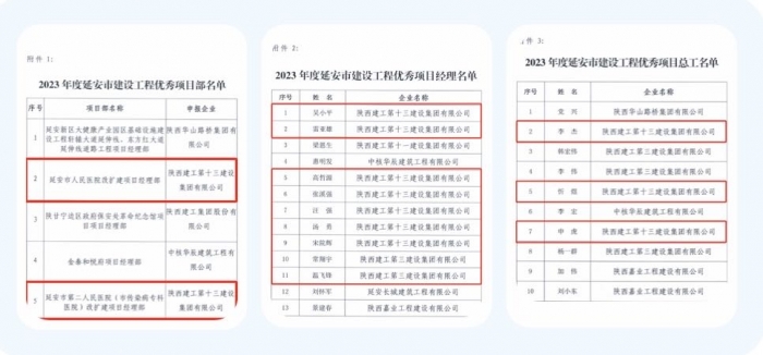集團延安市人民醫(yī)院改擴建項目經理部、延安市第二人民醫(yī)院(市傳染病??漆t(yī)院)改擴建項目經理部、陜甘寧邊區(qū)政府保安處革命紀念館項目經理部被評為“2023年度延安市建設工程優(yōu)秀項目部”;吳小平、雷亞雄、高哲源、張溪強、汪強、湯勇、宋院輝等人被評為“2023年度延安市建設工程優(yōu)秀項目經理”;李杰、忻煜、申虎等人被評為“2023年度延安市建設工程優(yōu)秀項目總工”。