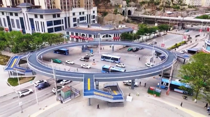 項目配建了一座四向互通式過街天橋--天橋設計為橢圓形,周長174米,欄桿高1.45米,橫跨柳林路及百合路,串聯(lián)七里鋪公園南北地塊與道路東側區(qū)域。天橋建成后,將有效解決二莊科十字路口人車混行問題,通行效率得到大幅度提升,為市民出行筑起了“安全屏障”。